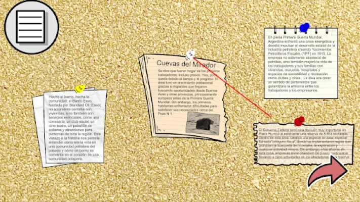 Unir pistas: El jugador/a contará con una pizarra donde puede unir las pistas encontradas para resolver las incógnitas con respecto a las imágenes.