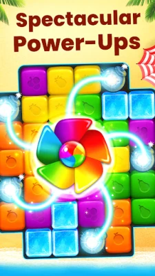 Embark upon a fantastic adventure as you solve tons of juicy puzzles. All you have to do is tap to match the colored fruit blocks on the screen. Make bigger matches and you'll create sweet power-ups, perfect for making some fresh explosions across the screen! Clear each puzzle by blasting the pieces away, then use your matching skills to take on the next level.